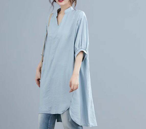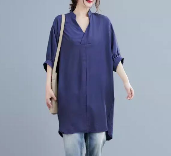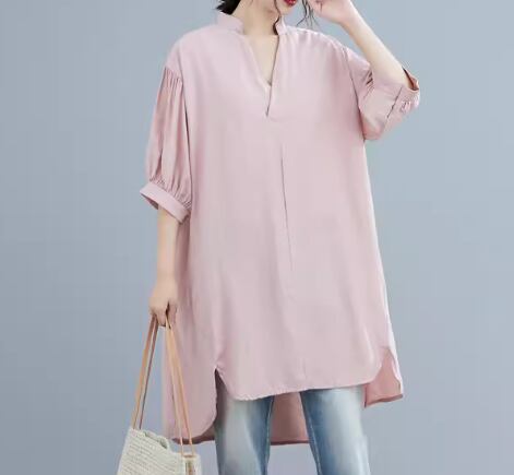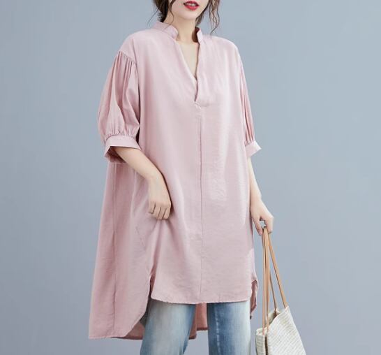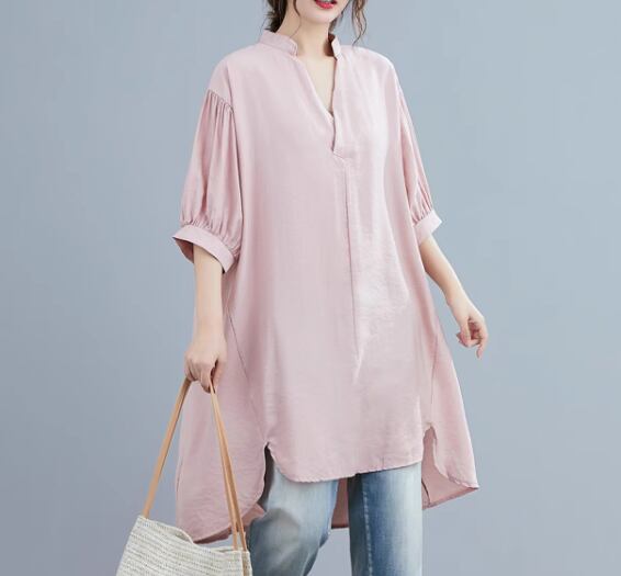 レディース トップス シャツ プルオーバー ロング 5分袖 ドロップショルダー Vネック かわいい 大人可愛い きれいめ シンプル カジュアル おしゃれ レトロ ラフ ボーイッシュ ルーズ クール エレガント 無地 夏 ママ OL デート お出かけ 体型カバー 普段使い 着回し トレンド 流行 ゆったり ゆる フリーサイズ 大きめ オーバーサイズ ホワイト ブラック ピンク ネイビー ライトブルー