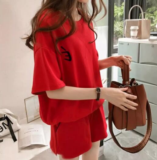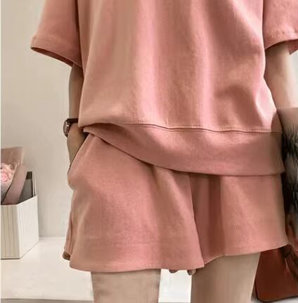 二点セット 上下セット ツーピース レディース トップス パンツ カットソー プルオーバー スウェット 部屋着 セットアップ スポーツウェア ショートパンツ Tシャツ 半袖 ラウンドネック ポケット ウエストゴム かわいい 大人可愛い シンプル カジュアル おしゃれ かっこいい レトロ ラフ ボーイッシュ スポーティー ルーズ クール 夏 楽ちん 普段使い 着回し S M L グレー ピンク レッド