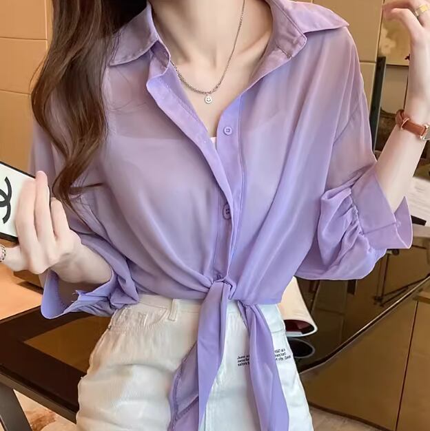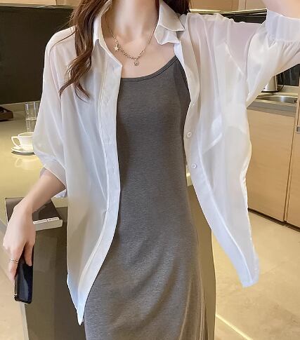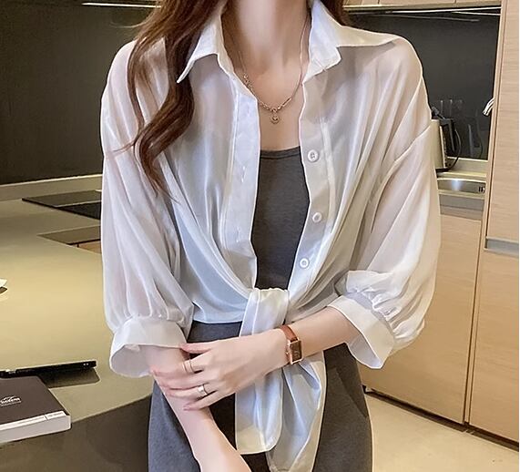 レディース トップス シャツ 羽織 前開き ミドル丈 5分袖 襟付き ポロカラー シフォン 透け感 シースルー ボタン かわいい 大人可愛い きれいめ シンプル カジュアル 上品 おしゃれ かっこいい こなれ感 無地 夏 デート お出かけ 重ね着 体型カバー 普段使い 着回し レイヤード トレンド 流行 日焼け防止 日焼け対策 冷房対策 ゆったり ゆる フリーサイズ 大きめ オーバーサイズ ホワイト ブラック グリーン パープル