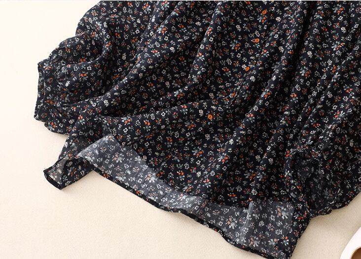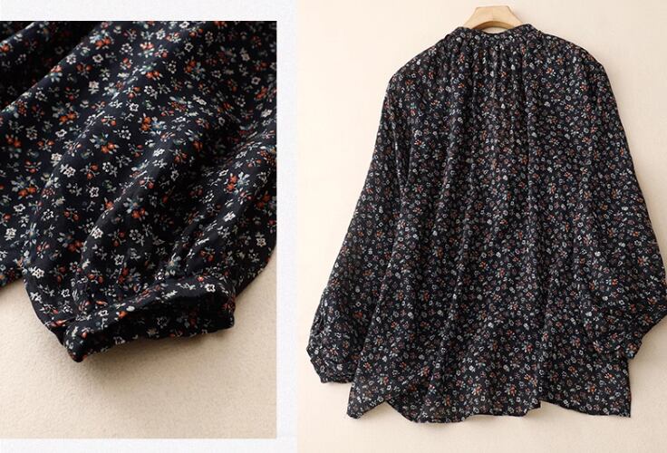 レディース トップス シャツ ミドル丈 長袖 ラウンドネック フェミニン 前開き ボタン リネン かわいい 大人可愛い きれいめ カジュアル 上品 おしゃれ レトロ ガーリー ルーズ エレガント キュート シック 高級感 優しい 穏やか 森ガール 花柄 フラワー プリント 小花柄 春 夏 デート お出かけ 楽ちん 体型カバー 普段使い 着回し 清楚 L XL 大きいサイズ ゆったり ゆる 大きめ ブラック