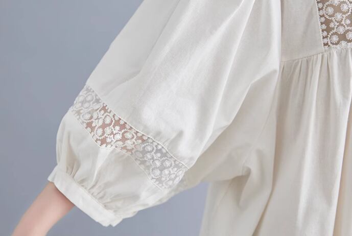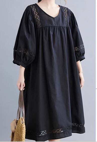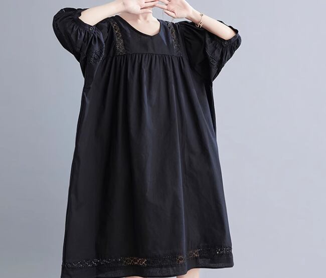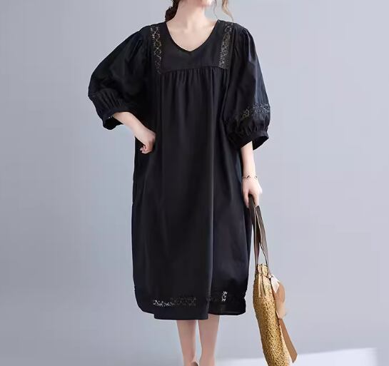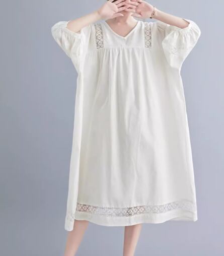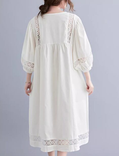 レディース ワンピース プルオーバー 膝丈 ミモレ ミドル丈 半袖 5分袖 ボリューム袖 ランタンスリーブ Vネック フェミニン 薄手 リネン 綿 コットン かわいい 大人可愛い きれいめ シンプル カジュアル 上品 おしゃれ レトロ ガーリー ルーズ エレガント キュート ナチュラル シック 高級感 夏 デート お出かけ 体型カバー 普段使い 清楚 ゆったり ゆる フリーサイズ 大きめ オーバーサイズ ホワイト ブラック