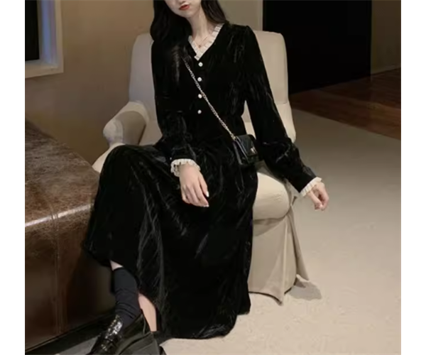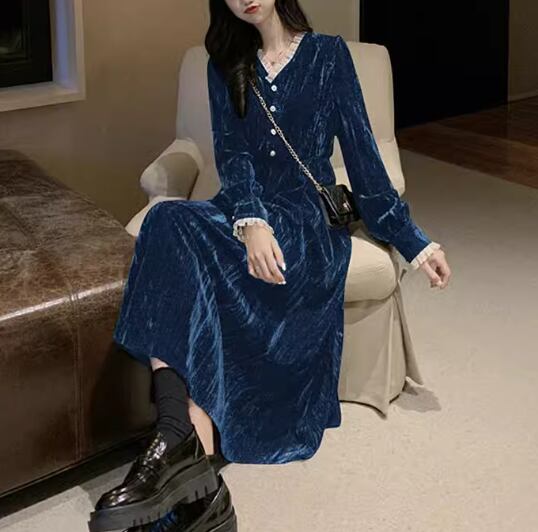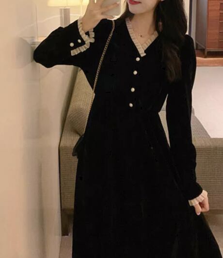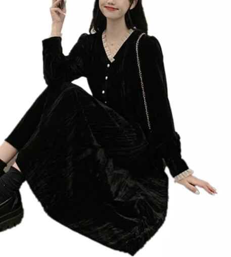 レディース ドレス ワンピース パーティードレス ウェディング パーティー 結婚式 二次会 披露宴 ミモレ ロング 長袖 Vネック Aライン レース フリル ハイウエスト プルオーバー ボタン ベルベット 可愛い きれいめ シンプル カジュアル 大人可愛い 上品 おしゃれ レトロ ガーリー 無地 イベント ホテル レストラン デート 食事会 会食 クリスマス 高見え 女子会 秋 冬 M L ブラック パープル グリーン レッド ブルー