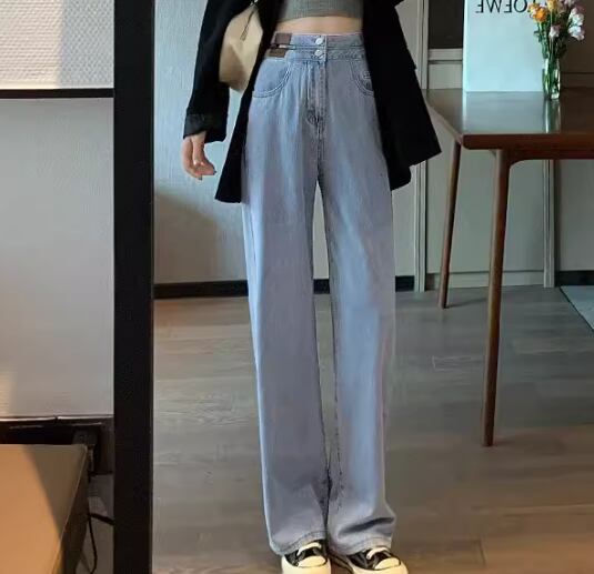 レディース パンツ ボトムス ジーンズ Gパン フルレングス ワイド ストレート ハイウエスト デニム ブルーデニム カラーデニム 薄手 かわいい 大人可愛い シンプル カジュアル おしゃれ かっこいい レトロ ボーイッシュ ルーズ 個性的 クール 無地 夏 10代 20代 学生 デート お出かけ 韓国 脚長 普段使い 着回し S M L XL 大きいサイズ ゆったり ブラック グレー ブルー ライトブルー
