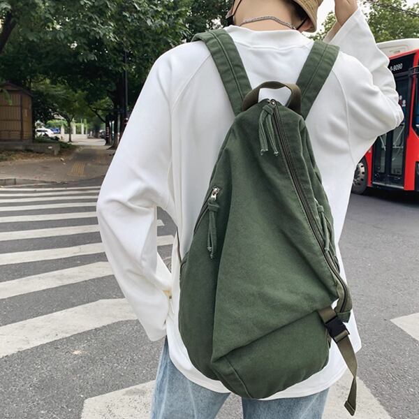 ウォッシュキャンバスの無地レトロバックパック。男女兼用です。シンプルでヴィンテージ感あふれるデザイン、耐久性のあるキャンバス素材で、日常使いやアウトドアにも最適。豊富な収納スペースと実用性を兼ね備えた、おしゃれで機能的なバックパックです。