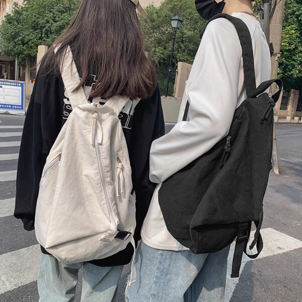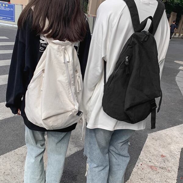 4色展開 男女兼用バックパック ユニセックス ハンドバッグ リュック バッグパック 大容量 多収納 軽量 ファスナー 帆布 シンプル カジュアル お洒落 かっこいい スポーティー エレガント スタイリッシュ 無地 ビジネス 通勤 通学 アウトドア イベント 普段使い