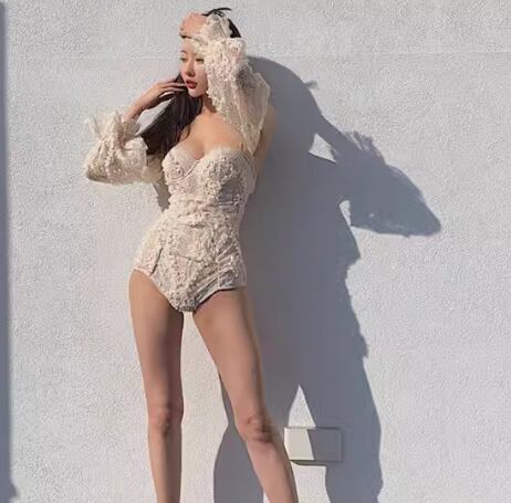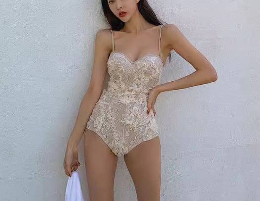 エレガントで上品なレースが美しいワンピースタイプの水着。