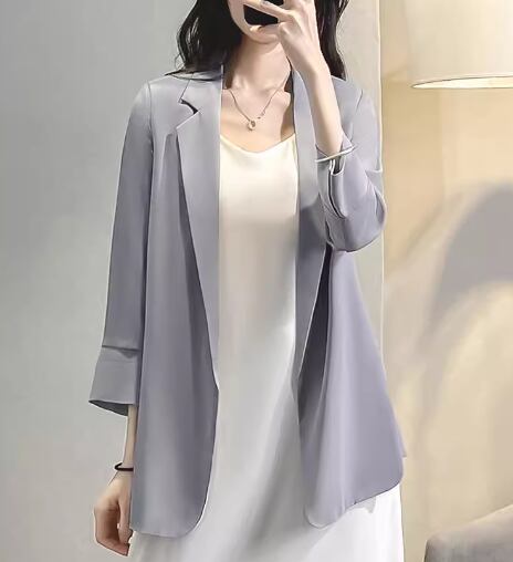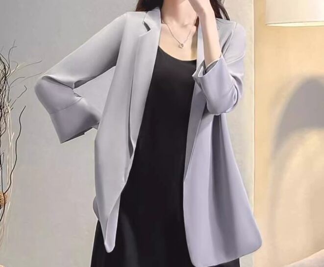 レディース ジャケット スーツ アウター 上着 羽織 前開き ミドル丈 7分袖 長袖 襟付き スーツカラー ストレート 薄手 かわいい 大人可愛い きれいめ シンプル カジュアル 上品 おしゃれ かっこいい こなれ感 クール エレガント フォーマル 無地 夏 オフィス ビジネス OL 通勤 デート お出かけ 体型カバー 普段使い 着回し 定番 着瘦せ 日焼け防止 日焼け対策 冷房対策 S M L XL 大きいサイズ ホワイト ブラック グレー