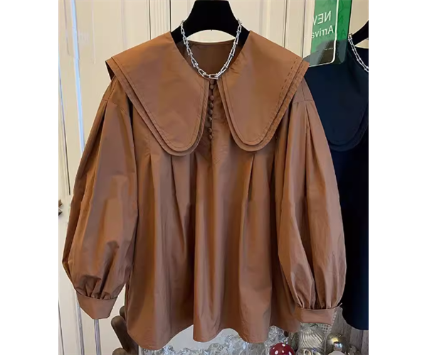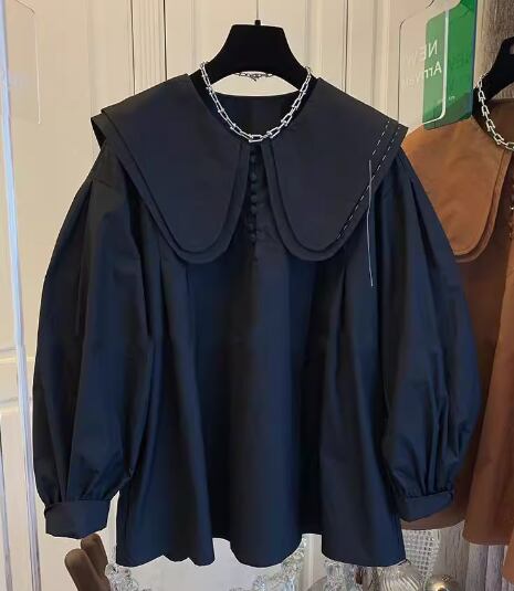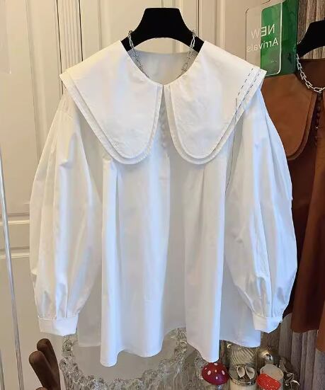 レディース トップス シャツ ブラウス プルオーバー ミドル丈 長袖 ボリューム袖 バルーン袖 ランタンスリーブ 襟付き 丸襟 ビッグカラー ドールカラー フェミニン セーラー風 ボタン かわいい 大人可愛い きれいめ シンプル カジュアル 上品 おしゃれ レトロ 無地 春 秋 10代 20代 学生 デート お出かけ 体型カバー 普段使い 着回し 清楚 トレンド 流行 M L XL 大きいサイズ ゆったり ゆる 大きめ オーバーサイズ ホワイト ブラック ブラウン
