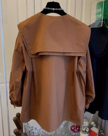 大きめの襟がアクセントになった女性らしいアイテムです。