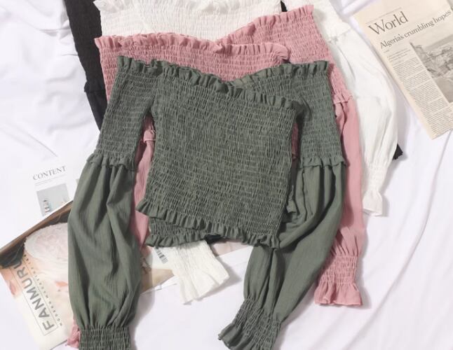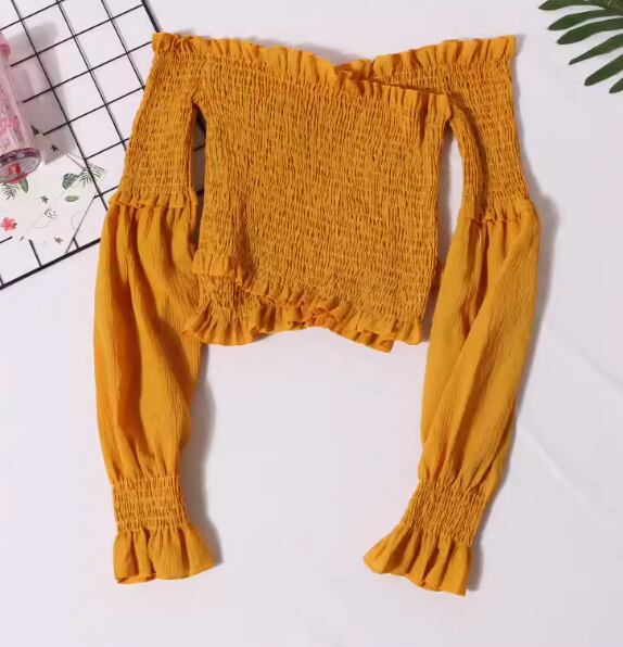 レディース トップス カットソー プルオーバー ショート クロップド丈 長袖 オフショルダー フェミニン シャーリング シフォン フリル ストレッチ 伸縮性 かわいい 大人可愛い シンプル カジュアル おしゃれ かっこいい こなれ感 ラフ ガーリー ルーズ エレガント 抜け感 キュート ラグジュアリー セクシー 無地 春 夏 10代 20代 学生 デート お出かけ 普段使い 着回し フリーサイズ イエロー ピンク グリーン