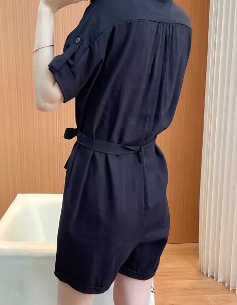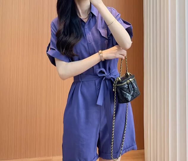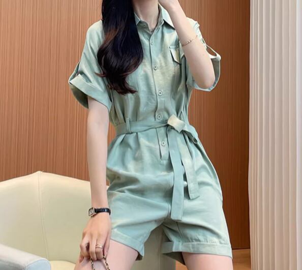 レディース パンツ オールインワン ミニ ショート 半袖 襟付き ポロカラー ストレート ウエストマーク ウエストリボン ボタン かわいい 大人可愛い シンプル カジュアル おしゃれ かっこいい レトロ ボーイッシュ クール カレッジ風 学生風 アクティブ 無地 夏 10代 20代 学生 デート お出かけ 普段使い XS S M L XL 小さいサイズ 大きいサイズ ブラック イエロー グリーン パープル