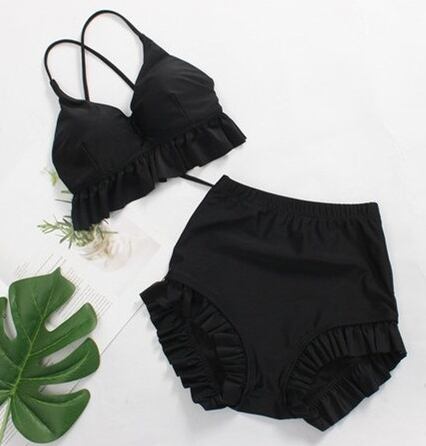 水着 ビキニ スイムウェア レディース 体型カバー セパレート パッド付き ワイヤー入り Vネック フリル レースアップ バックリボン ハイウエスト バストアップ効果 セット ツーピース 上下セット 二点セット 大人可愛い おしゃれ 個性的 フェミニン 無地 プール 夏 海 脚長 着痩せ スタイルアップ 体型カバー お腹カバー M L XL Aカップ Bカップ Cカップ ブラック レッド