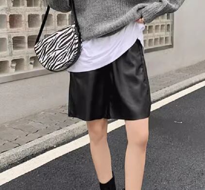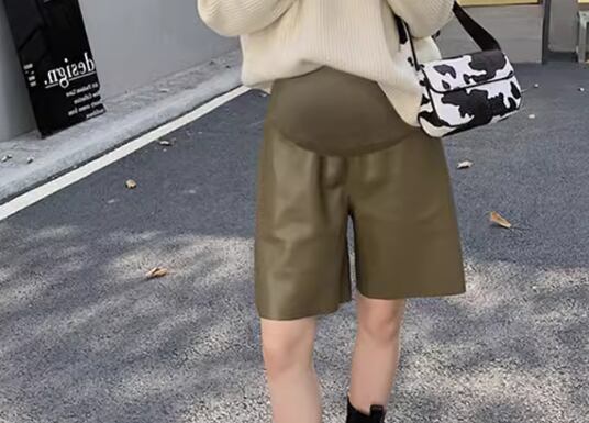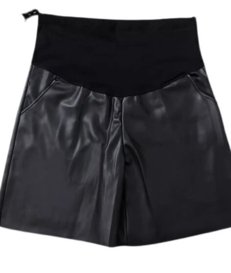 高級感のあるレザー素材を使用した妊婦さん用のハーフパンツ。