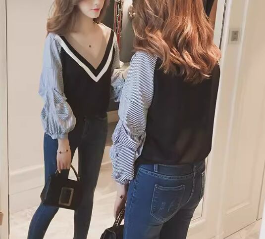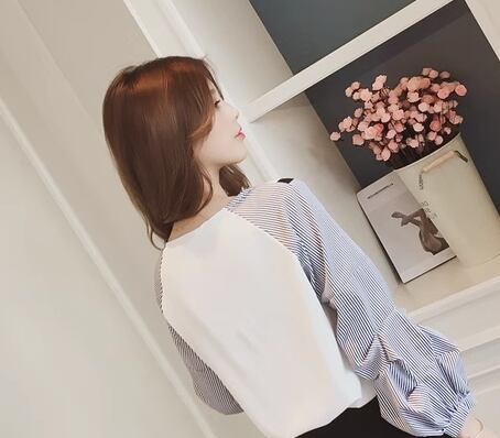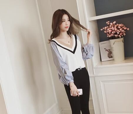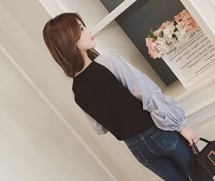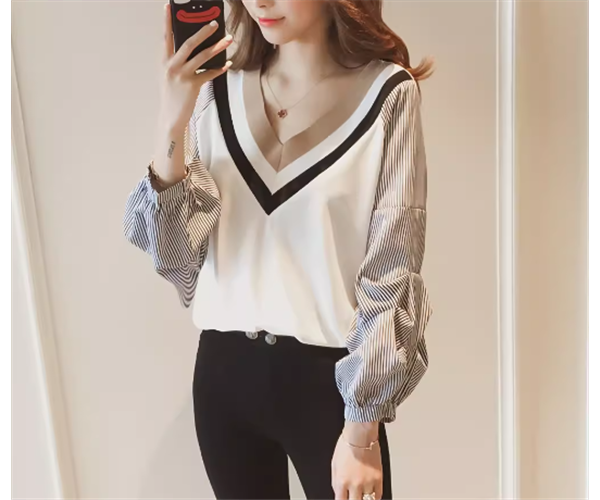 レディース トップス カットソー プルオーバー Tシャツ ミドル丈 長袖 ボリューム袖 ランタンスリーブ Vネック かわいい 大人可愛い きれいめ カジュアル 上品 おしゃれ かっこいい レトロ ボーイッシュ ルーズ 個性的 クール エレガント キュート ラグジュアリー カレッジ風 学生風 ナチュラル ストライプ 春 デート お出かけ 体型カバー 普段使い 着回し M L ゆったり ホワイト ブラック