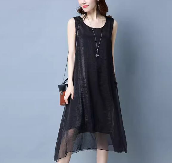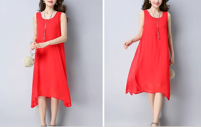 レディース ワンピース プルオーバー 膝下 ミモレ 袖なし ノースリーブ ラウンドネック Aライン シフォン 透け感 かわいい 大人可愛い きれいめ シンプル カジュアル 上品 おしゃれ レトロ ラフ ガーリー ルーズ エレガント キュート ベーシック ナチュラル 無地 夏 デート お出かけ 楽ちん 体型カバー 普段使い 定番 M L XL 大きいサイズ ゆったり ホワイト ブラック レッド アプリコット グリーン