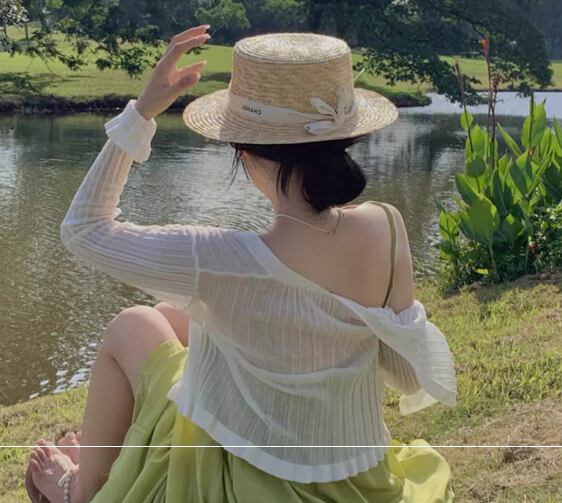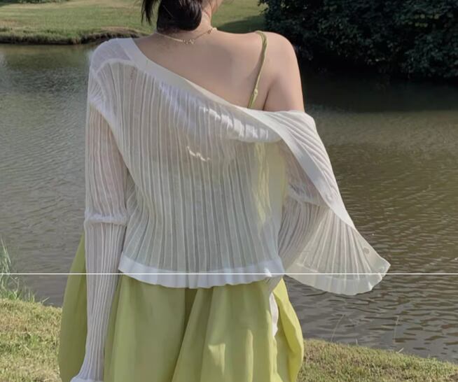 レディース トップス カーディガン 上着 羽織 前開き ショート クロップド丈 長袖 スリム 細身 フェミニン 透け感 シースルー 薄手 かわいい 大人可愛い きれいめ シンプル カジュアル 上品 おしゃれ レトロ こなれ感 ガーリー エレガント キュート ラグジュアリー 無地 夏 デート お出かけ 重ね着 体型カバー 普段使い 着回し 清楚 日焼け防止 日焼け対策 冷房対策 フリーサイズ 小さめ ホワイト