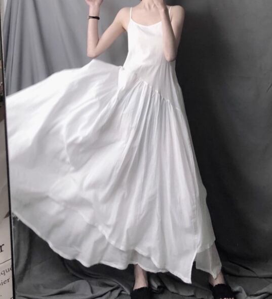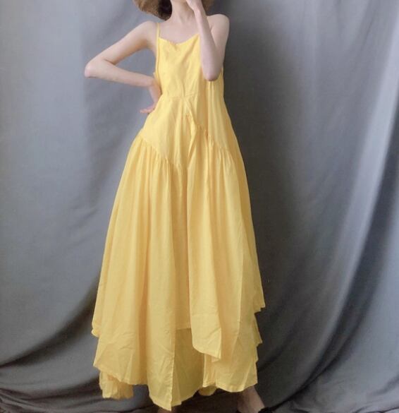 レディース ドレス ワンピース キャミワンピース ロング イレギュラー アシンメトリー 不規則 左右非対称 袖なし ノースリーブ フレア Aライン 切り替えデザイン プルオーバー コットン 綿 リネン 可愛い きれいめ シンプル カジュアル 大人可愛い 上品 おしゃれ キュート ガーリー エレガント 無地 パーティー イベント ホテル レストラン デート 食事会 会食 高見え 夏 L XL イエロー ホワイト ブラック パープル レッド
