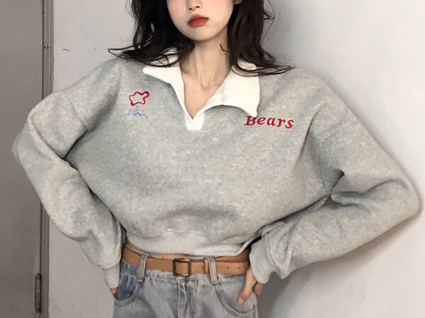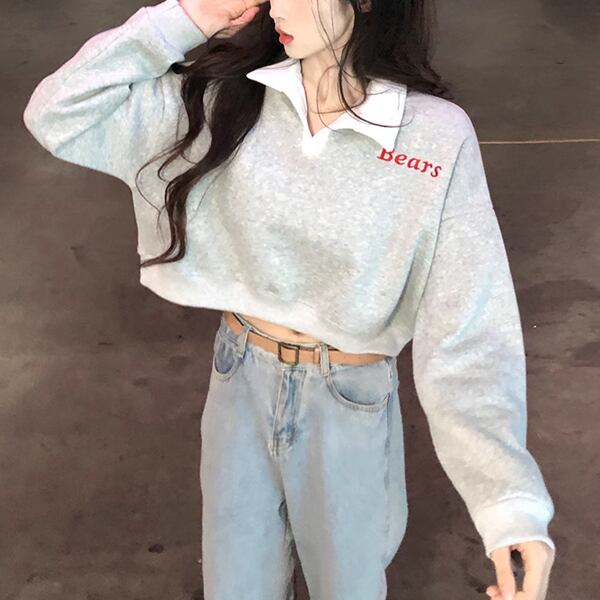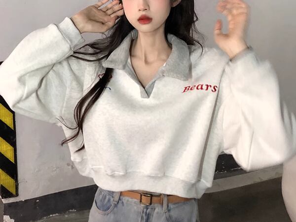 秋冬に最適なクロップド丈のトレーナー。防寒性が高く、ポロカラーが上品な印象を与えます。カジュアルにもフォーマルにも対応し、どんなコーディネートにもマッチする万能アイテムです。