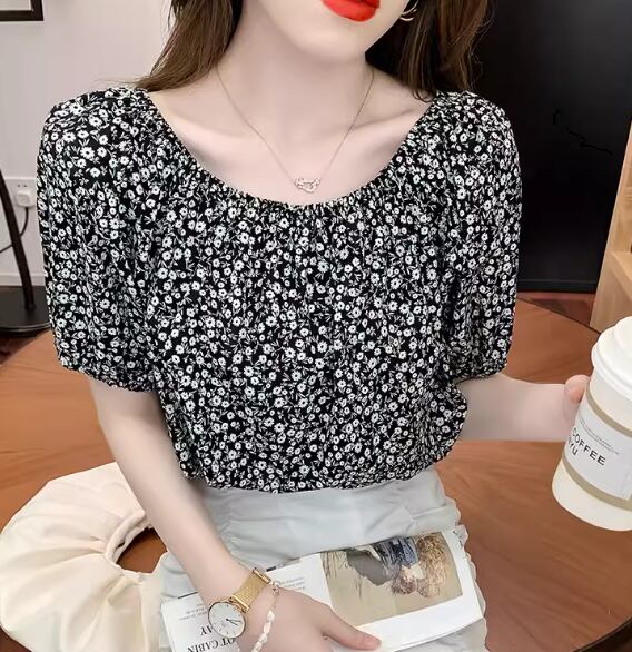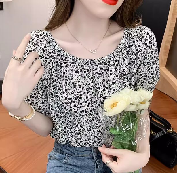 女性らしい小花柄プリントが可愛い半袖カットソー。