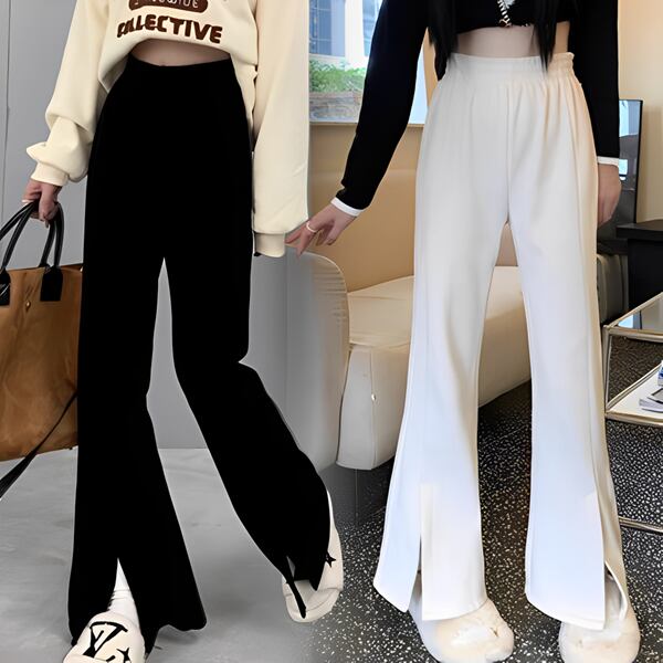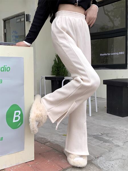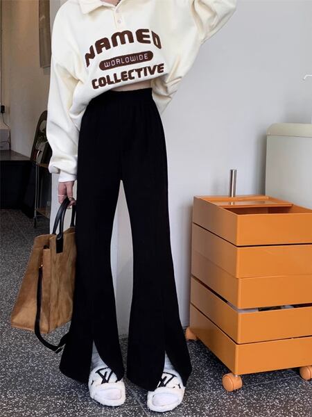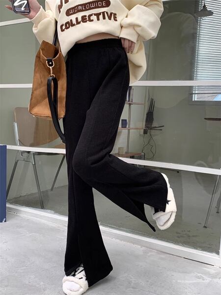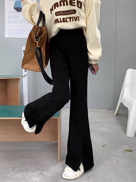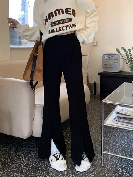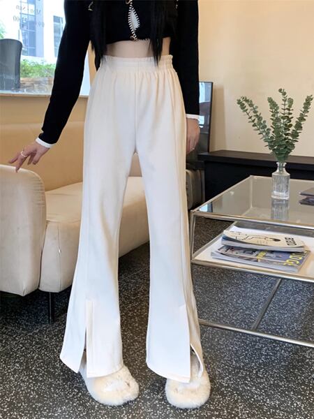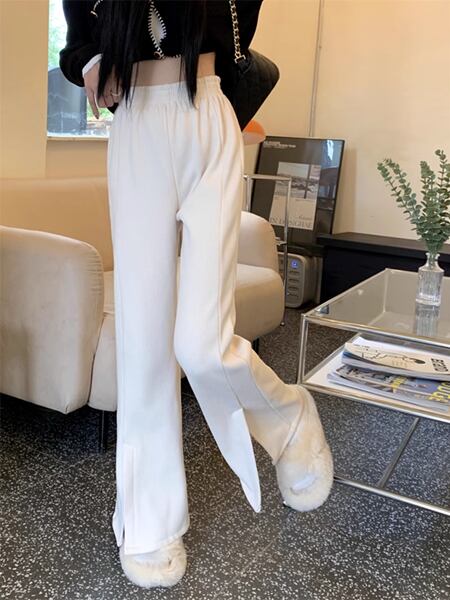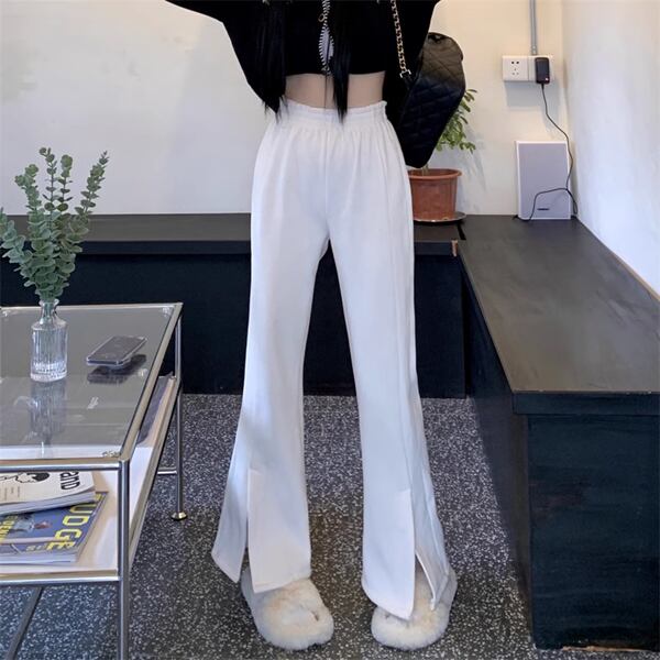 スリットマイクロフレアパンツ レディース パンツ ボトムス ロングパンツ ワイドレッグパンツ セミフレア スリット ファスナー ポケット ハイウエスト ベルベット きれいめ シンプル カジュアル おしゃれ ルーズ クール エレガント 無地 シーズンレス 10代 通勤 通学 イベント ガーデン ショッピング カフェ ツーリング ホワイト ブラック