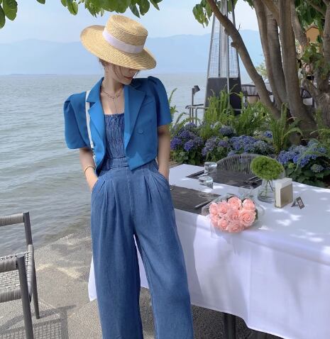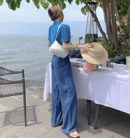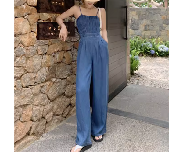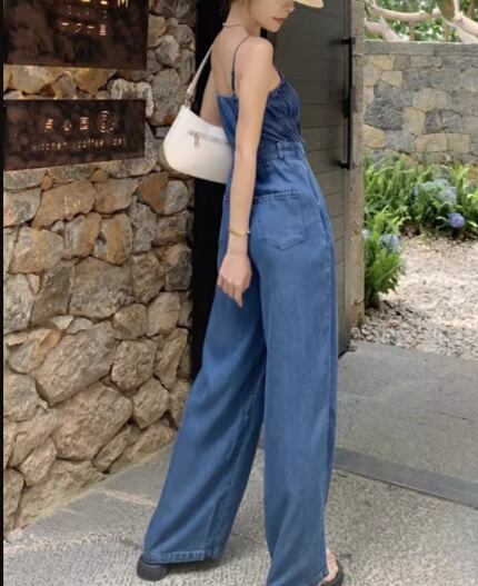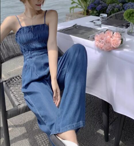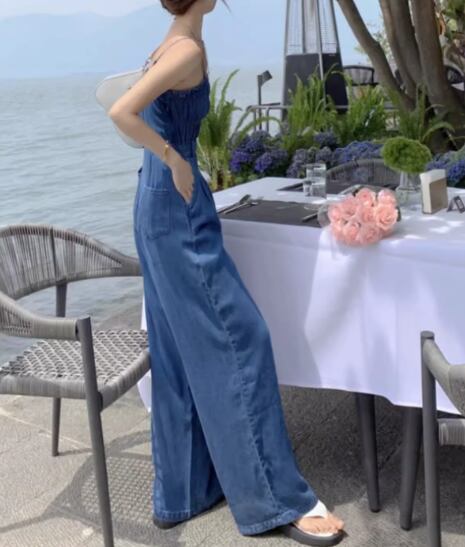 レディース パンツ サロペット ワイドパンツ フルレングス 袖なし ノースリーブ スリム 細身 ハイウエスト 異国風 ウォッシュ デニム ブルーデニム 薄手 かわいい 大人可愛い シンプル カジュアル おしゃれ かっこいい レトロ ボーイッシュ クール ラグジュアリー 爽やか ハンサム シック 高級感 スタイリッシュ 無地 夏 デート お出かけ 脚長 普段使い スタイルアップ S M L 小さめ ブルー