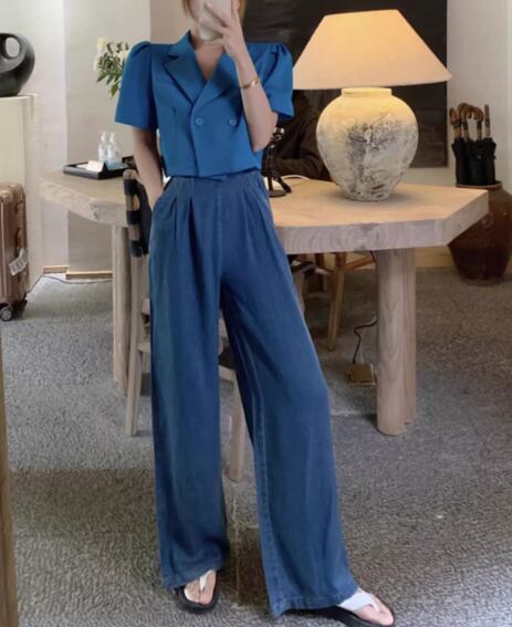 薄手のデニム生地を使用していて、ワイドパンツなシルエットなので通気性◎