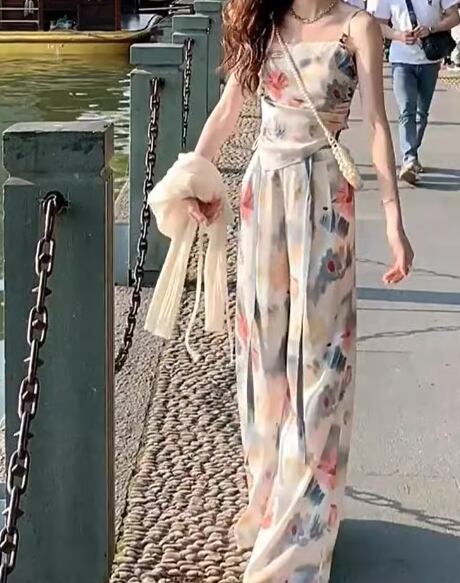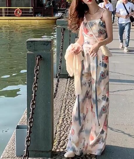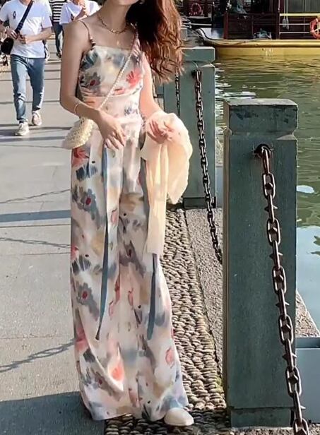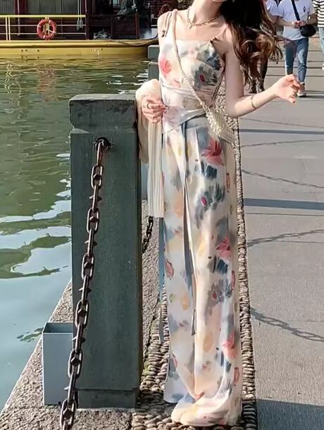 クロップド丈のキャミソールとフルレングスのワイドパンツの二点セットです。