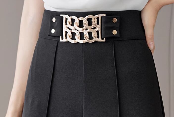 センターラインの入ったワイドフレアなシルエットは美脚効果◎