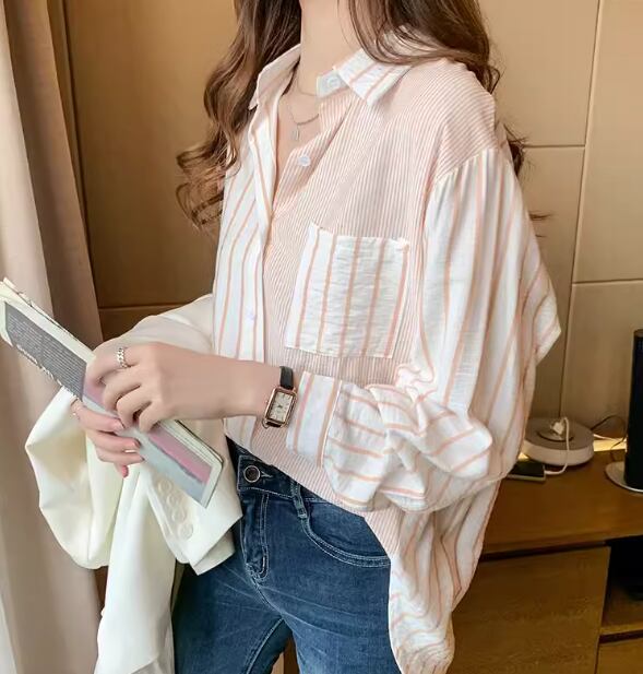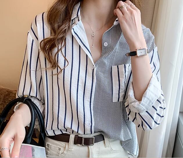 レディース トップス シャツ アシンメトリー ミドル丈 左右非対称 長袖 襟付き ポロカラー 前開き 異国風 ボタン リネン 綿 コットン かわいい 大人可愛い きれいめ カジュアル おしゃれ かっこいい レトロ ボーイッシュ ストライプ 春 ママ オフィス ビジネス OL 通勤 デート お出かけ 韓国 体型カバー 普段使い 着回し トレンド 流行 S M L XL 大きいサイズ ゆったり ゆる 大きめ オーバーサイズ オレンジ ネイビー