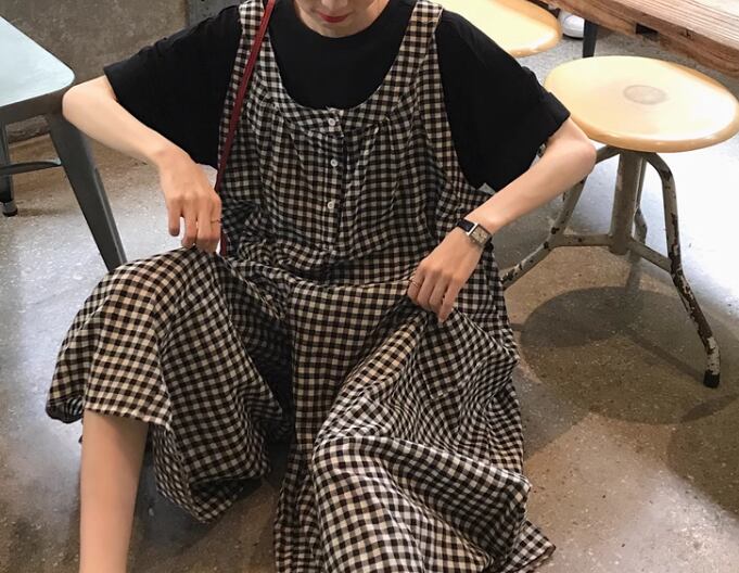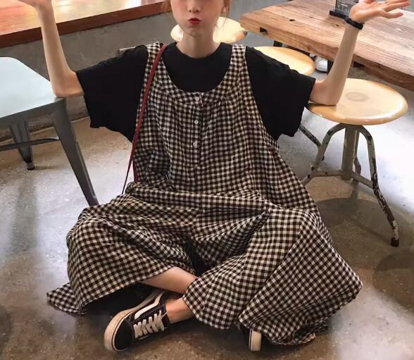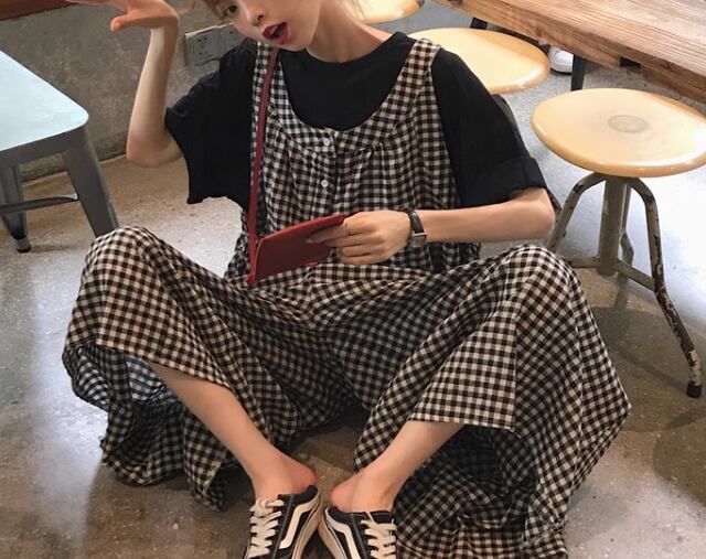 レディース パンツ サロペット オーバーオール フルレングス 袖なし ノースリーブ ワイド ドレープ ポケット ハイウエスト 異国風 ボタン かわいい 大人可愛い シンプル カジュアル おしゃれ レトロ ボーイッシュ ルーズ キュート カレッジ風 学生風 チェック 夏 10代 20代 学生 デート お出かけ 重ね着 韓国 体型カバー 普段使い 着回し レイヤード トレンド 流行 ゆったり ゆる フリーサイズ 大きめ ブラック