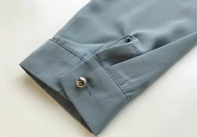 上品で落ち着いた色味が大人可愛いプルオーバータイプの長袖シャツ。