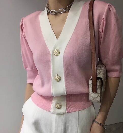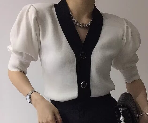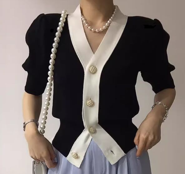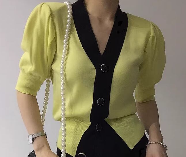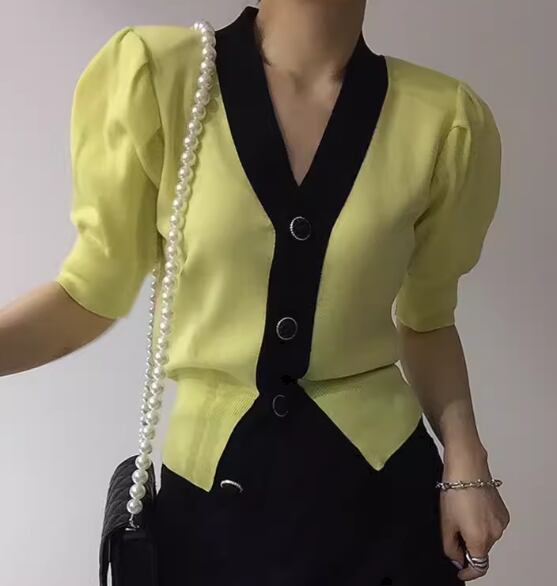 レディース トップス ニット セーター カーディガン サマーニット ショート クロップド丈 半袖 5分袖 ボリューム袖 Vネック フェミニン 前開き ウエストゴム 異国風 ボタン かわいい 大人可愛い きれいめ シンプル カジュアル 上品 おしゃれ かっこいい こなれ感 クール エレガント 無地 夏 10代 20代 OL 学生 デート お出かけ 韓国 普段使い 着回し フリーサイズ ホワイト ブラック イエロー ピンク