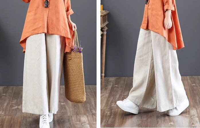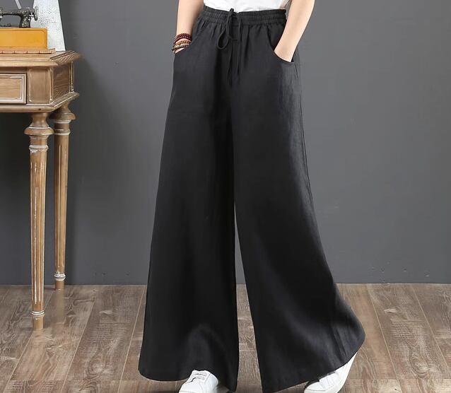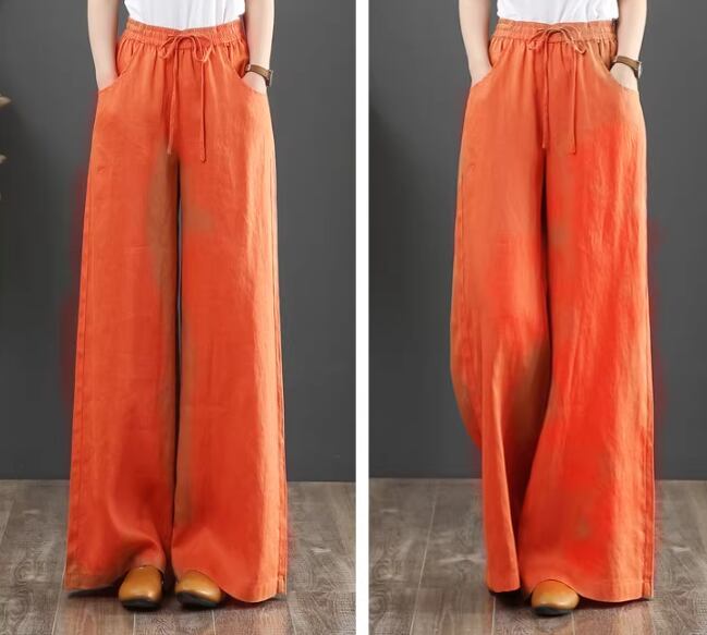 レディース パンツ ボトムス ワイドパンツ フルレングス ワイド ストレート ポケット ハイウエスト ウエストゴム リネン 綿 コットン 麻 かわいい 大人可愛い シンプル カジュアル おしゃれ かっこいい レトロ メンズライク ボーイッシュ ルーズ クール 無地 春 夏 デート お出かけ 楽ちん 体型カバー 普段使い 着回し S M L XL 大きいサイズ ゆったり ブラック グレー オフホワイト オレンジ グリーン