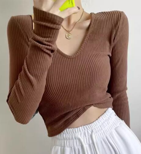 レディース トップス カットソー ニット セーター プルオーバー インナー Tシャツ ショート クロップド丈 長袖 Vネック スリム 細身 異国風 かわいい 大人可愛い きれいめ シンプル カジュアル 上品 おしゃれ かっこいい レトロ こなれ感 ラフ ボーイッシュ クール エレガント 無地 春 秋 デート お出かけ 韓国 普段使い 着回し 定番 着瘦せ M L XL 大きいサイズ ホワイト ブラック ブラウン ピンク