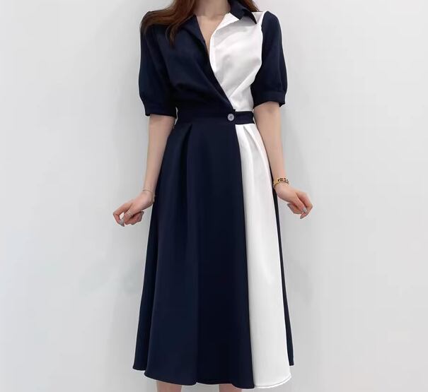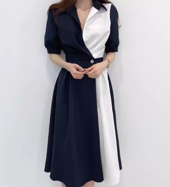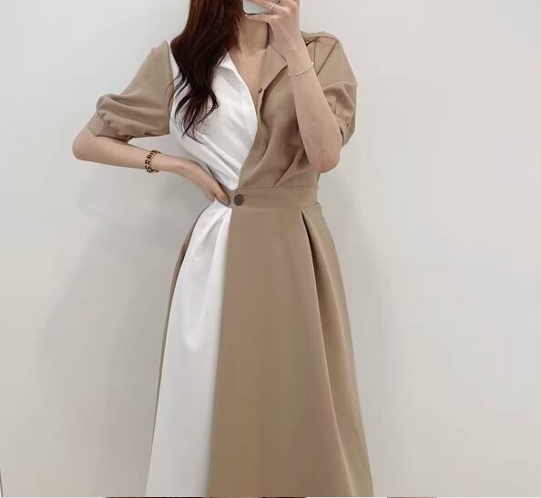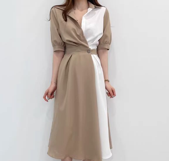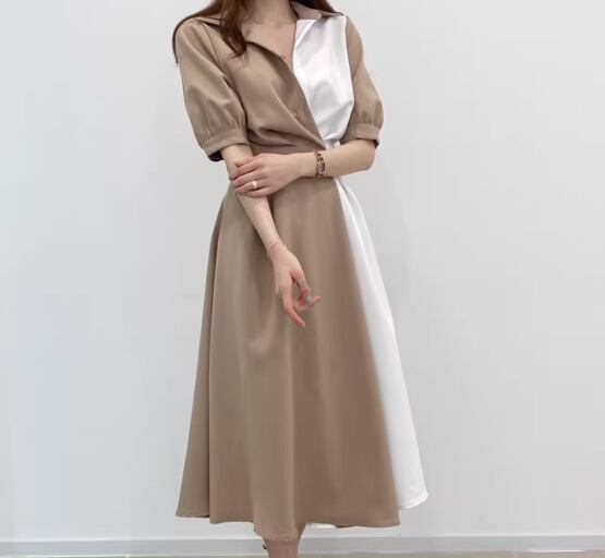レディース ワンピース シャツワンピ 膝下 ミモレ 半袖 襟付き ポロカラー フェミニン ウエストマーク ハイウエスト 異国風 ボタン かわいい 大人可愛い きれいめ シンプル カジュアル 上品 おしゃれ エレガント キュート ナチュラル 知的 清潔感 シック 高級感 優しい 穏やか 無地 夏 デート お出かけ 韓国 普段使い 清楚 着瘦せ スタイルアップ S M L ブラウン ブルー バイカラー