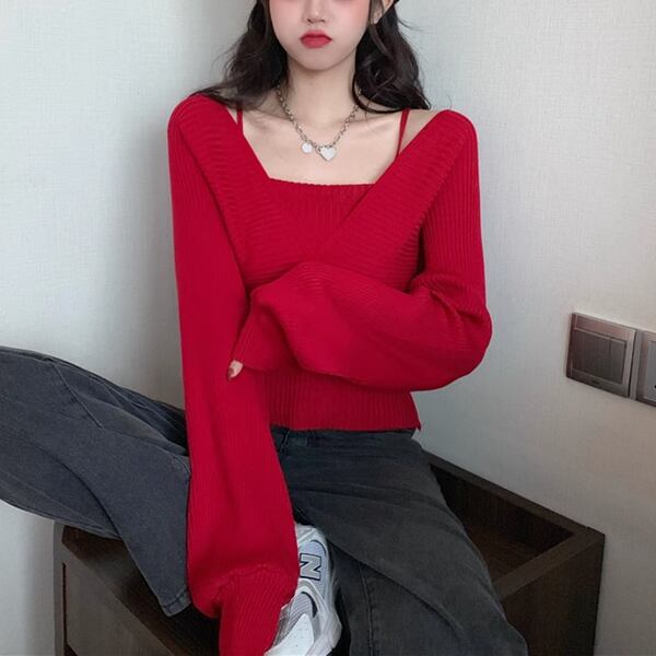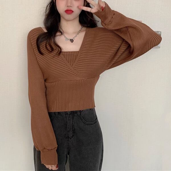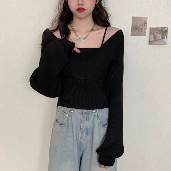 全5色 フロントクロスセーター レディース トップス ニット セーター 長袖 パフスリーブ ラグラン 肩出し Vネック スクエアネック オフショルダー ワンショルダー セミフレア 細身 アシンメトリー 切り替えデザイン カシュクール 大人可愛い 上品 おしゃれ かっこいい こなれ感 ガーリー ルーズ エレガント 無地 10代 20代 通勤 通学 お出かけ パーティー イベント レストラン 女子会 コンサート 着回し フィット
