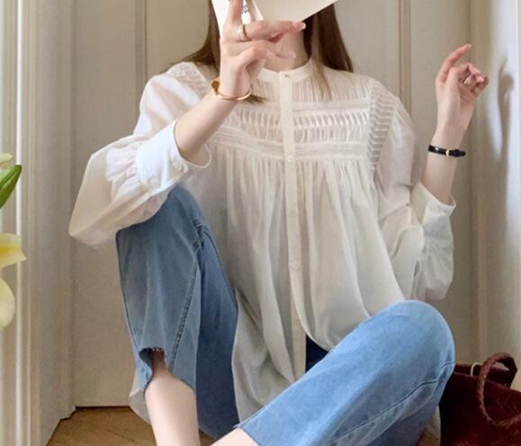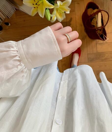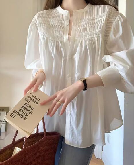 レディース トップス シャツ ミドル丈 長袖 パフスリーブ 異国風 大人可愛い シンプル カジュアル おしゃれ レトロ ルーズ エレガント ナチュラル 清潔感 爽やか シック 高級感 優しい 穏やか 無地 夏 ママ OL デート お出かけ 体型カバー 普段使い 着回し 日焼け防止 日焼け対策 冷房対策 S M L XL 大きいサイズ ゆったり ゆる 大きめ ホワイト