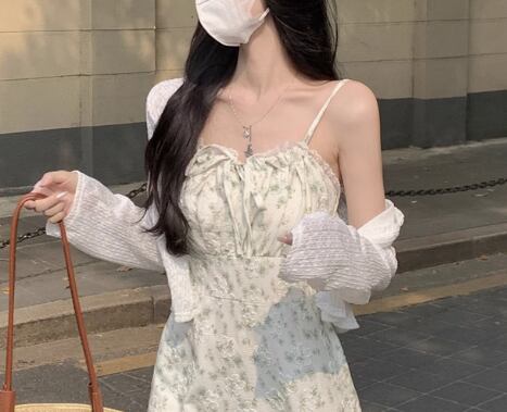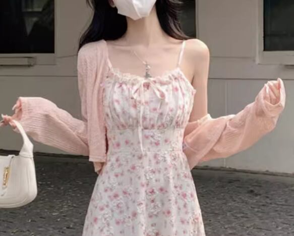 丈が短いのでワンピースとのレイヤードがおしゃれに決まります。