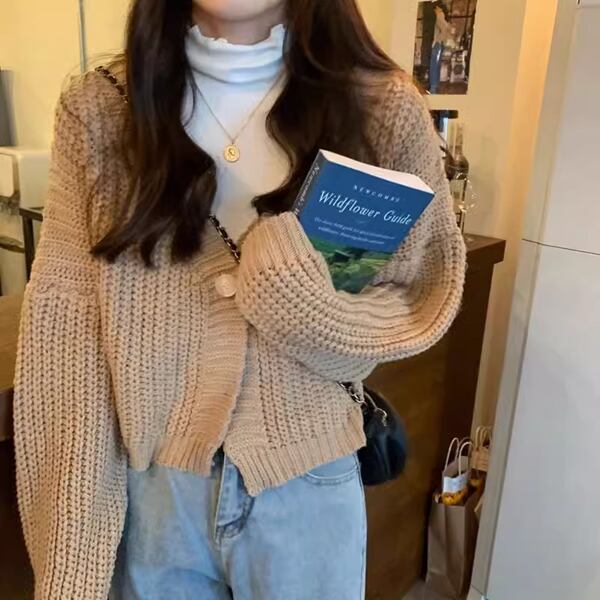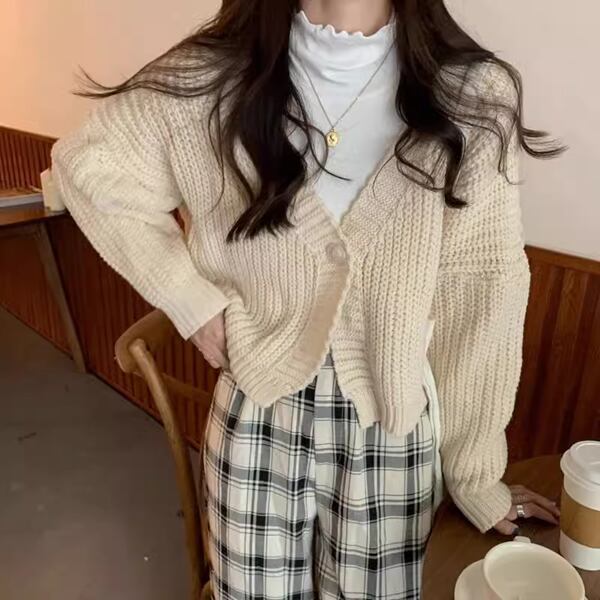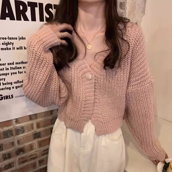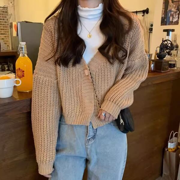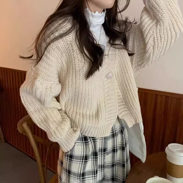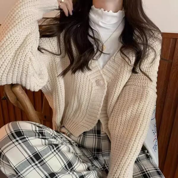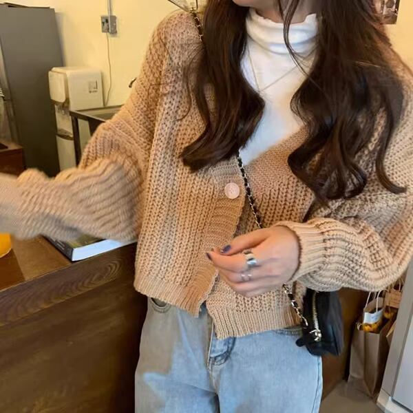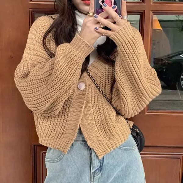 4色展開 アウター レディース カーディガン 長袖 萌袖 襟なし Vネック ニット ボタン 前開き 厚手 かわいい 大人 大人可愛い 大人女子 きれいめ 上品 おしゃれ お洒落 ガーリー レトロ シンプル カジュアル ルーズ こなれ感 ラフ 10代 20代 30代 通勤 OL 通学 学生 デート お出かけ 公園デビュー 女子会 休日 旅行 普段使い 韓国 韓国系 オルチャン ファッション スタイル コーデ モテ 楽ちん 体型カバー ワンサイズ 大きめ 大きい 大きいサイズ ゆる ゆったり