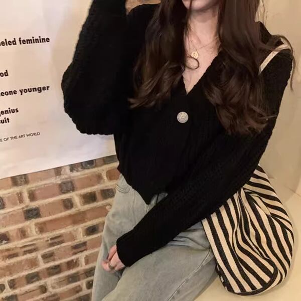 Vネックが女性らしい雰囲気を演出する長袖ショートカーディガン。着丈が短めで軽量なので、コーディネートのアクセントにぴったりです。オフィスカジュアルからデイリーコーデまで幅広く活躍してくれる優れもの。1枚羽織るだけでおしゃれ度がぐっとアップします。。どんなボトムスとも相性抜群で、着回し力も抜群です。一枚持っておくと重宝すること間違いなしのカーディガンです。