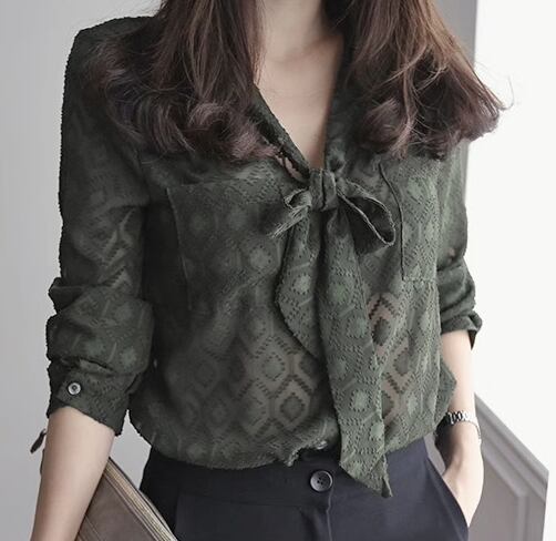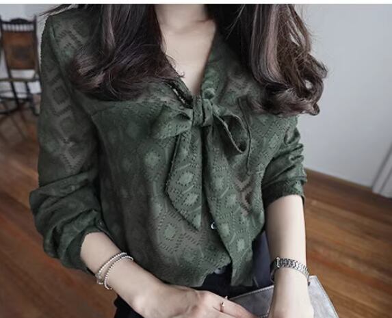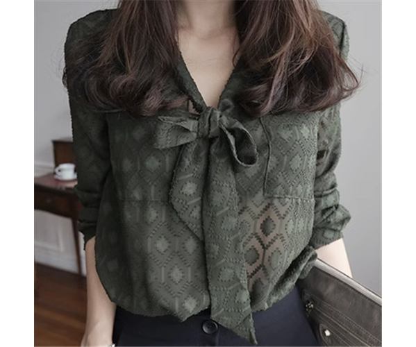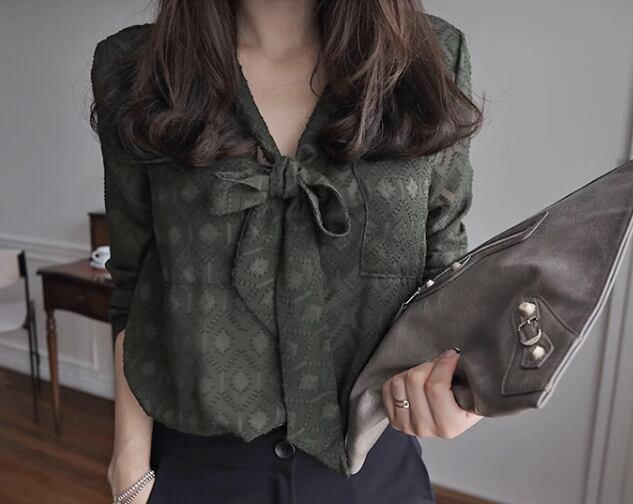 レディース トップス シャツ ミドル丈 長袖 Vネック りぼんタイ フェミニン シフォン リボン 異国風 かわいい 大人可愛い きれいめ 上品 おしゃれ かっこいい こなれ感 個性的 エレガント ラグジュアリー 知的 ハンサム シック 高級感 スタイリッシュ 春 秋 オフィス ビジネス OL 通勤 デート お出かけ 韓国 体型カバー 普段使い 着回し S M L XL 大きいサイズ ゆったり グリーン