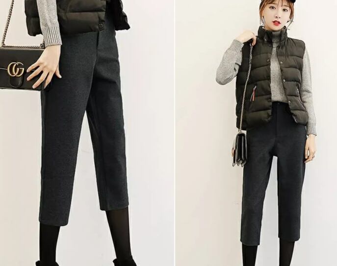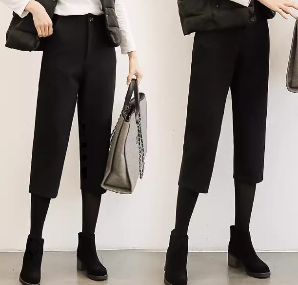 レディース パンツ ボトムス ウール 7分丈 クロップド丈 テーパード ハーレムパンツ ポケット ハイウエスト 厚手 ストレッチ 伸縮性 かわいい 大人可愛い きれいめ シンプル カジュアル 上品 おしゃれ かっこいい ボーイッシュ クール エレガント ナチュラル ハンサム シック 高級感 無地 秋 冬 暖かい 普段使い 着回し XS S M L XL 小さいサイズ 大きいサイズ ブラック グレー