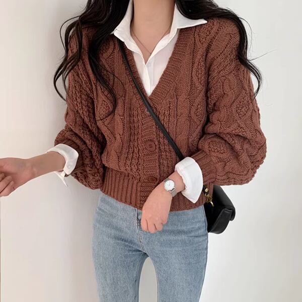 春と秋にぴったりのVネックランタンスリーブニットショートカーディガンは、軽やかで着心地の良いアイテムです。独特のランタンスリーブと短めの丈が特徴で、シンプルながらもスタイリッシュなデザインが魅力。さまざまなコーディネートに合わせやすく、季節の変わり目に活躍します。