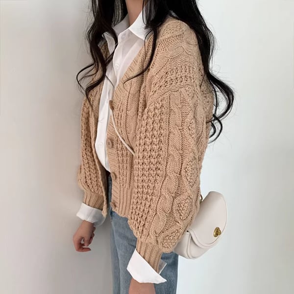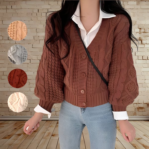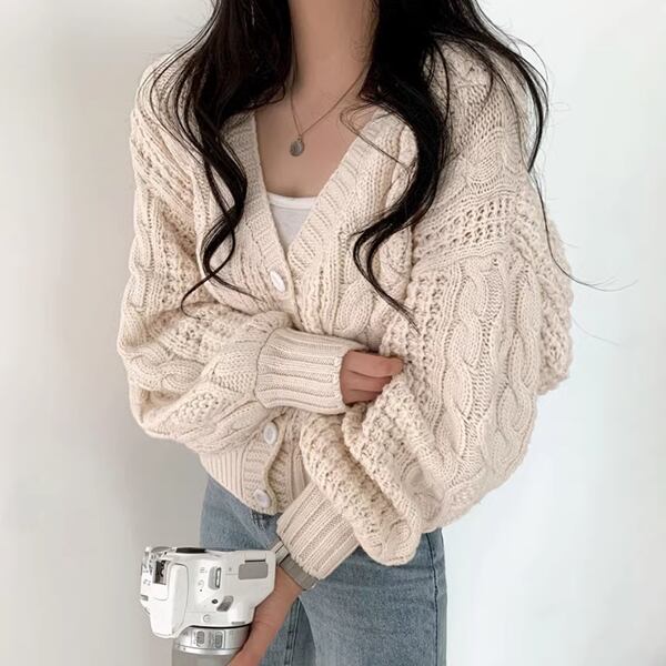 全4色 レディース トップス ニット カーディガン ショート 長袖 ランタンスリーブ Vネック ワイド ストレート フォーマル オーバーサイズ ヒップホップ ふっくら 伸縮性 ボタン リブニット ケーブルニット 大人可愛い カジュアル 上品 ガーリー エレガント ロリータ 無地 秋 冬 10代 20代 通勤 通学 お出かけ イベント レストラン ショッピング ライブ 着回し