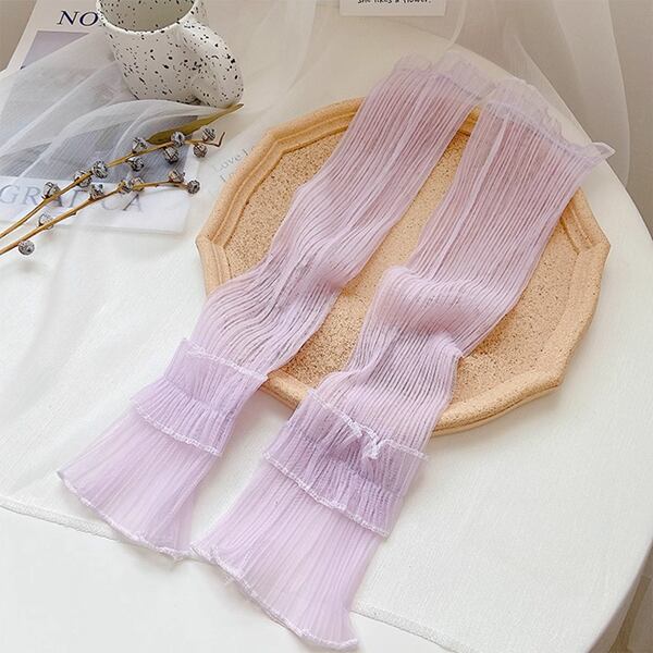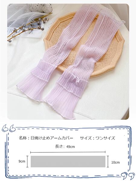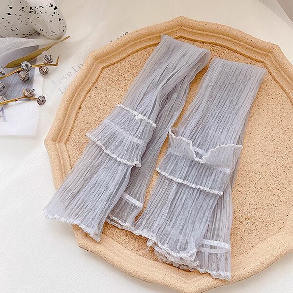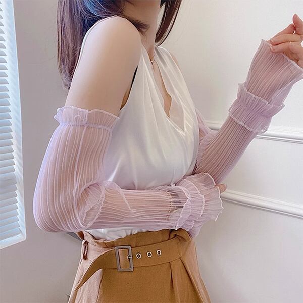 アームスリーブといえばレディーの夏ならではのアクセサリーといえます。薄手で透け感のあるシースルーデザイン。フリル付きで可愛らしさを演出し、日焼け防止やUVカットで紫外線対策も万全。二の腕をカバーする機能的でおしゃれなアイテムです。