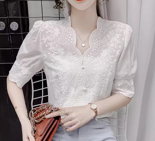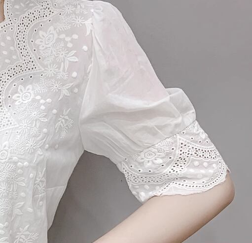 上品で美しいレースが魅力的な半袖シャツ。
