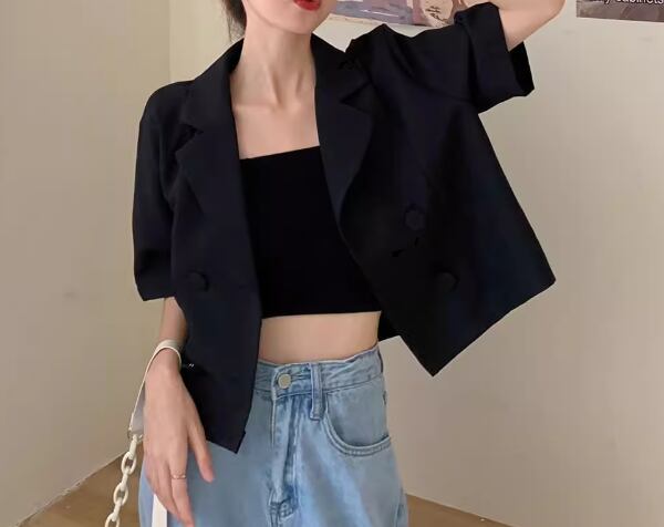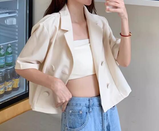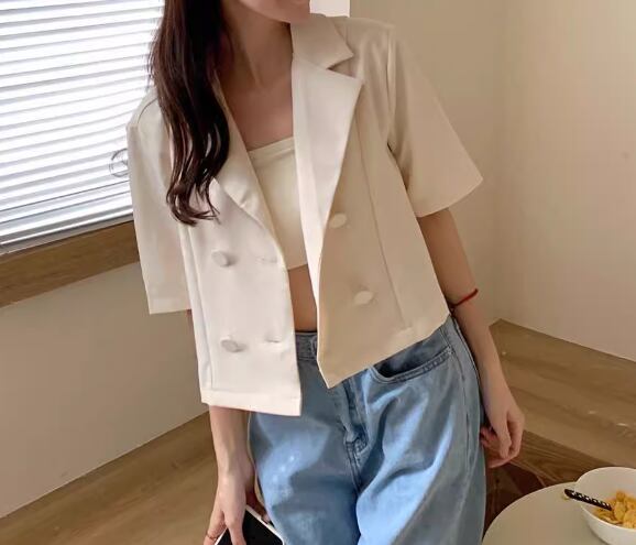 レディース ジャケット スーツ ショート クロップド丈 半袖 Vネック 襟付き スーツカラー 異国風 ボタン レザー PU かわいい 大人可愛い きれいめ シンプル カジュアル 上品 おしゃれ かっこいい レトロ こなれ感 ボーイッシュ ルーズ クール エレガント 抜け感 キュート ラグジュアリー ナチュラル 知的 ハンサム シック 高級感 無地 夏 デート お出かけ 韓国 普段使い 着回し S M L ゆったり ホワイト ブラック