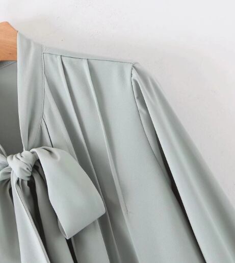りぼんタイと袖部分のレースが女性らしさを演出してくれます。