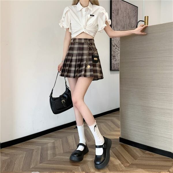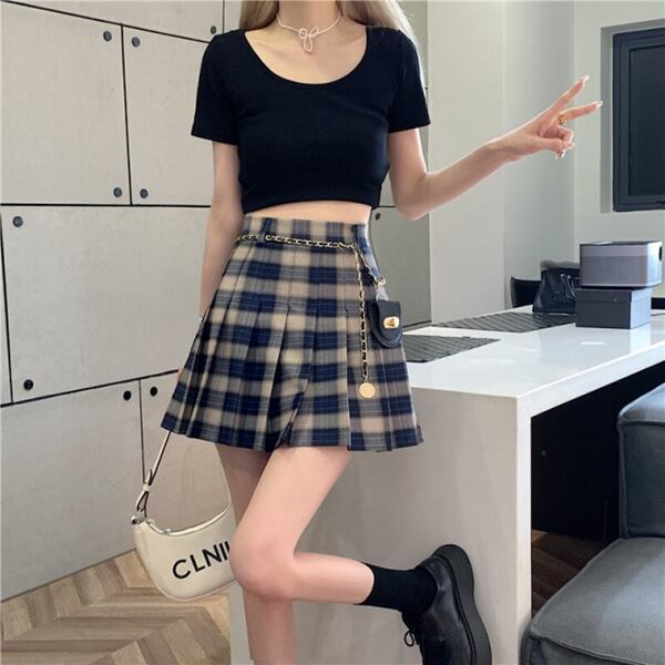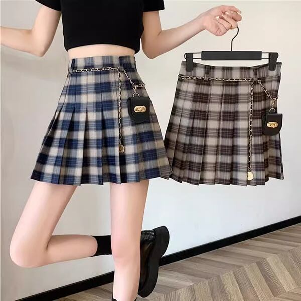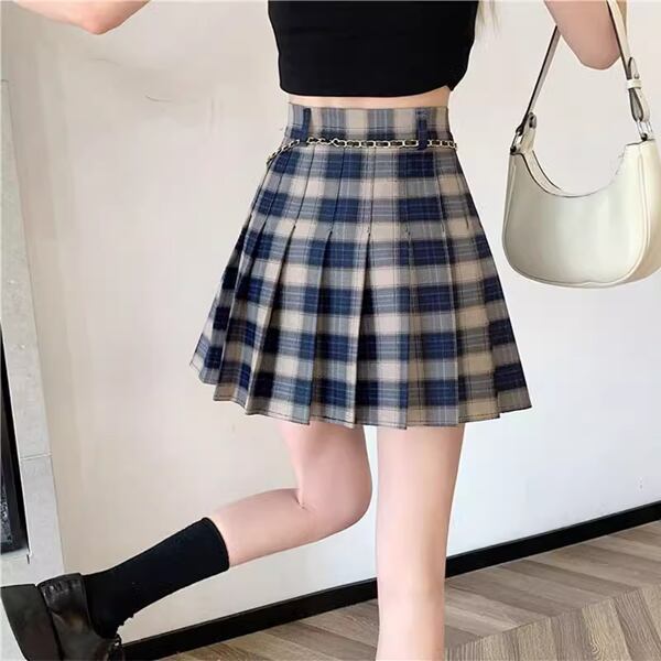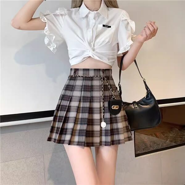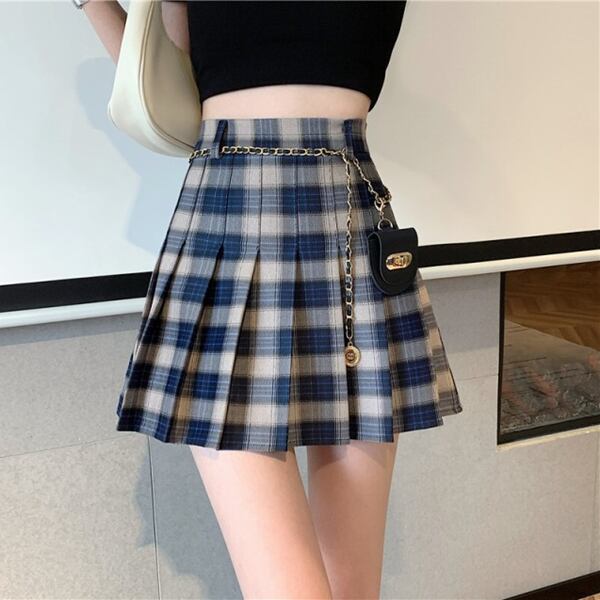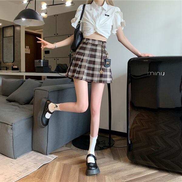 スリムなシルエットとレトロなチェック柄。洗練されたカレッジスタイルのショートプリーツスカートです。ハイウエスト、Aラインのデザインが、スタイリッシュでとっても可愛らしい作品です。
