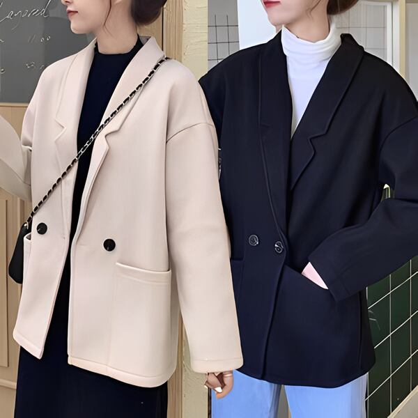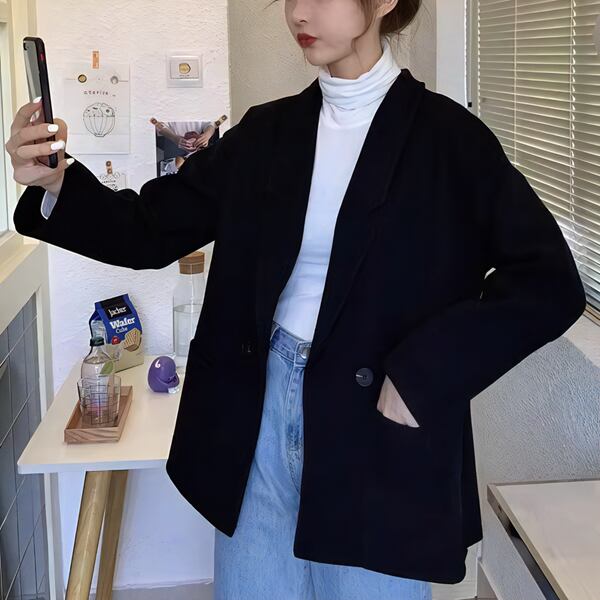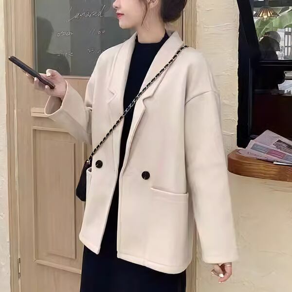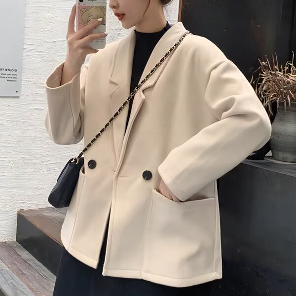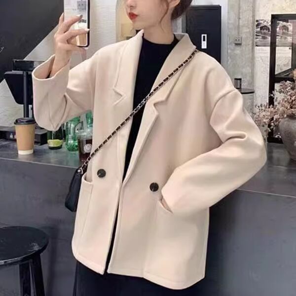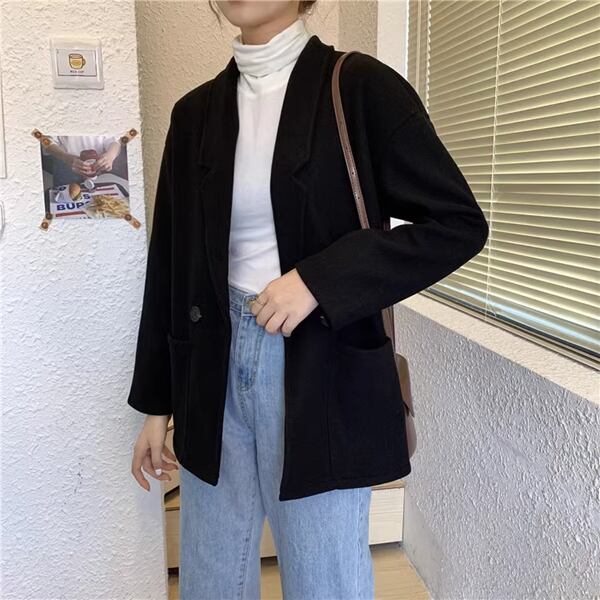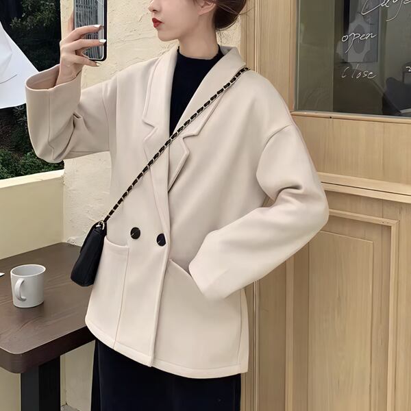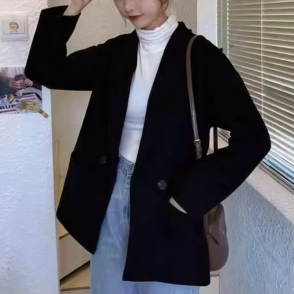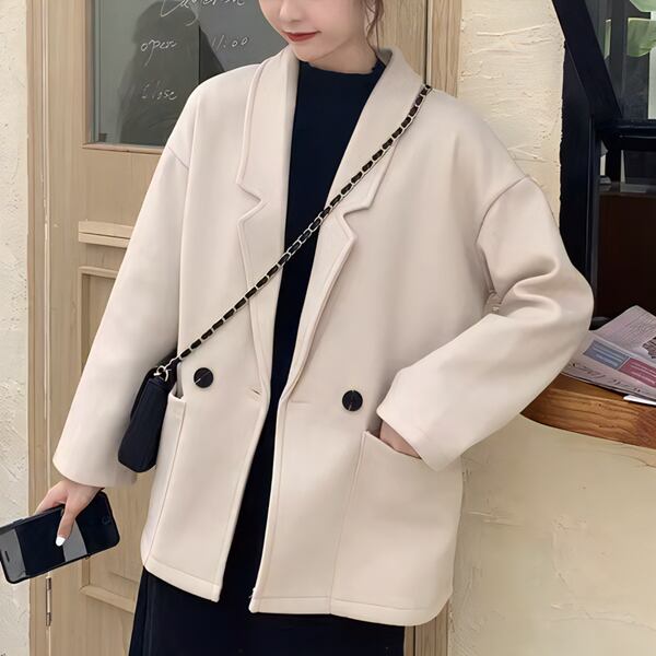 2カラー レディース トップス ジャケット アウター 上着 ウール テーラードジャケット ブレザー 長袖 スリム Aライン シングルブレスト フォーマル ソリッドカラー ボタン 大人可愛い きれいめ シンプル 上品 レトロ ガーリー エレガント 知的 オフィスカジュアル 無地 20代 30代 ビジネス 通勤 イベント ホテル コンサート カフェ 着回し ゆったりウエスト